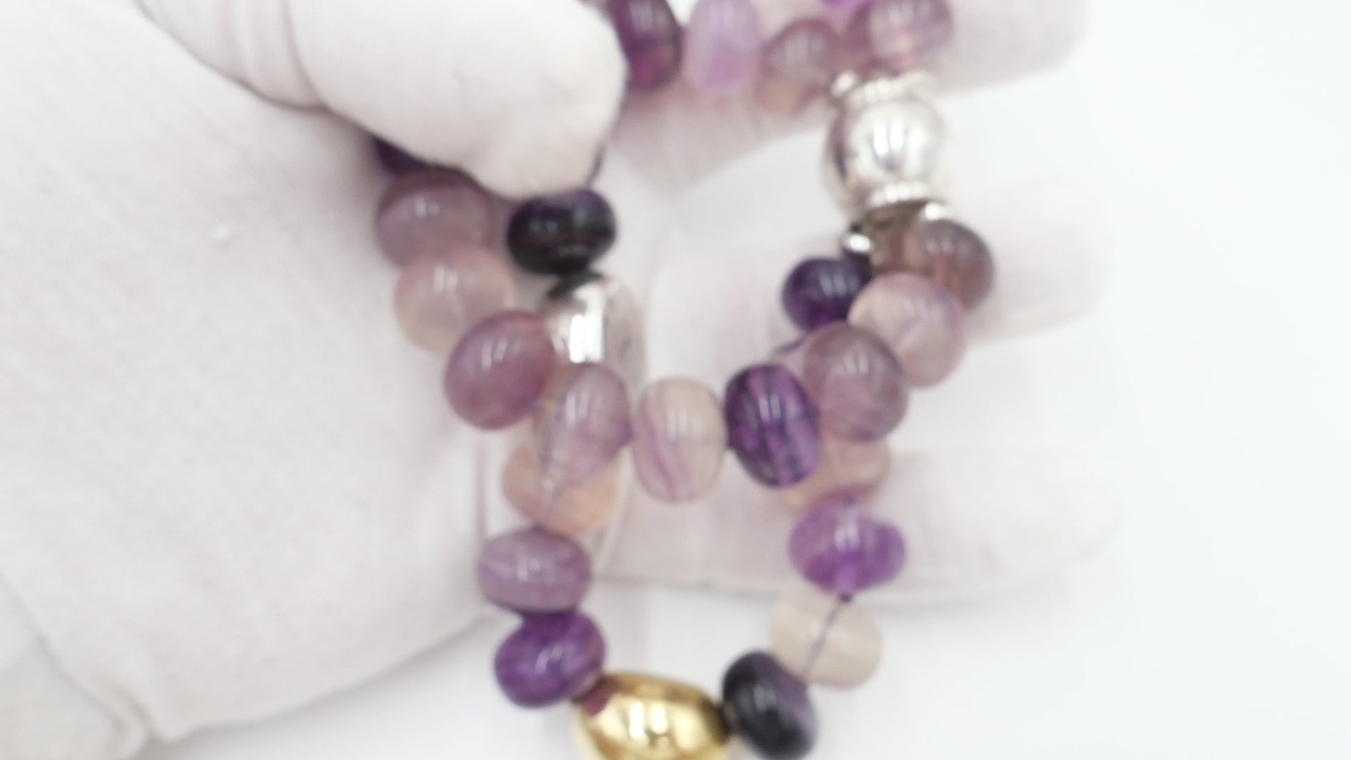 Amethyst Armband 925 Silber & 750 Gold Elementen LANGER Magnet Verschluss