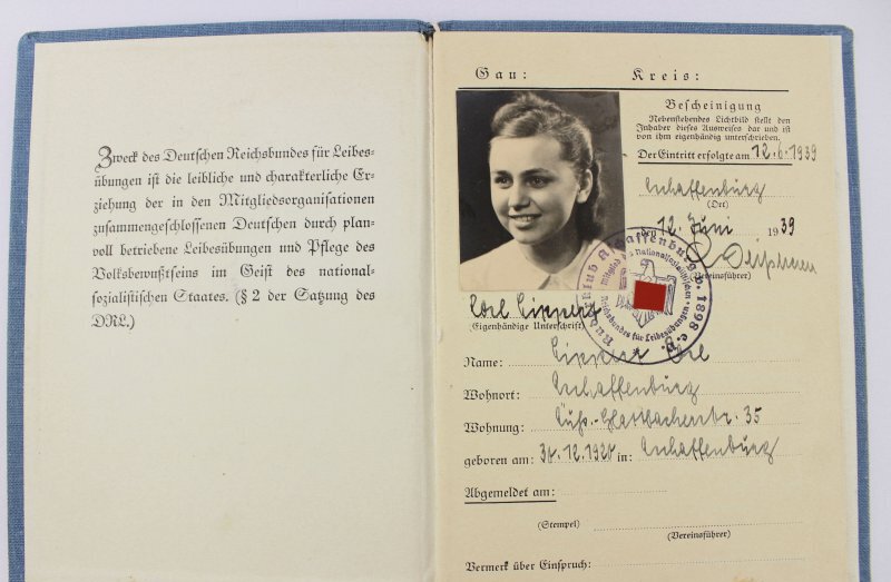 Arbeitsbuch Kennkarte Leibesübung Ahnenpass einer Frau