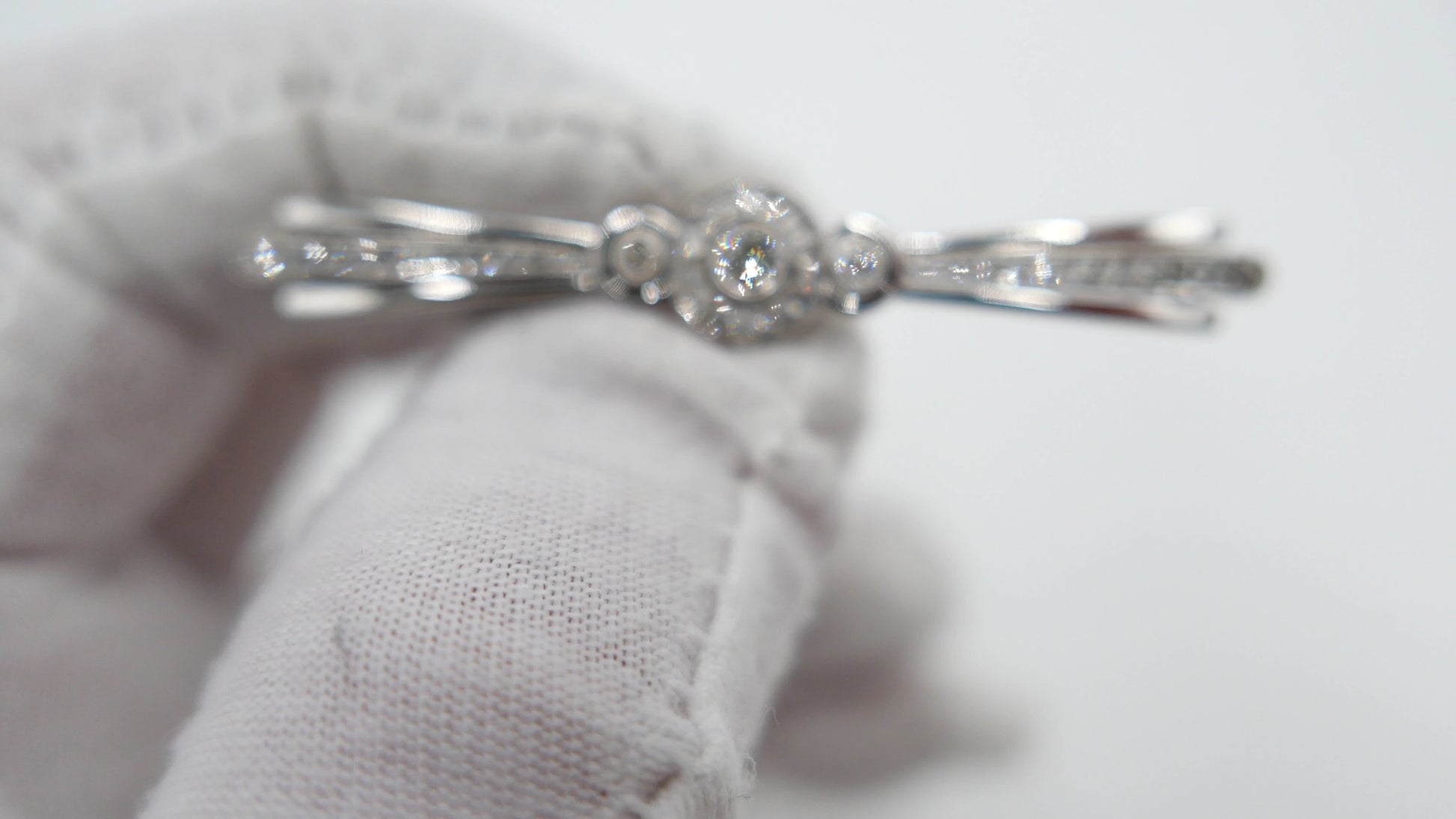 Art Deco 1930-40er Brosche Weißgold mit 49 Diamanten 1,5 Ct Stabbrosche 585 14K