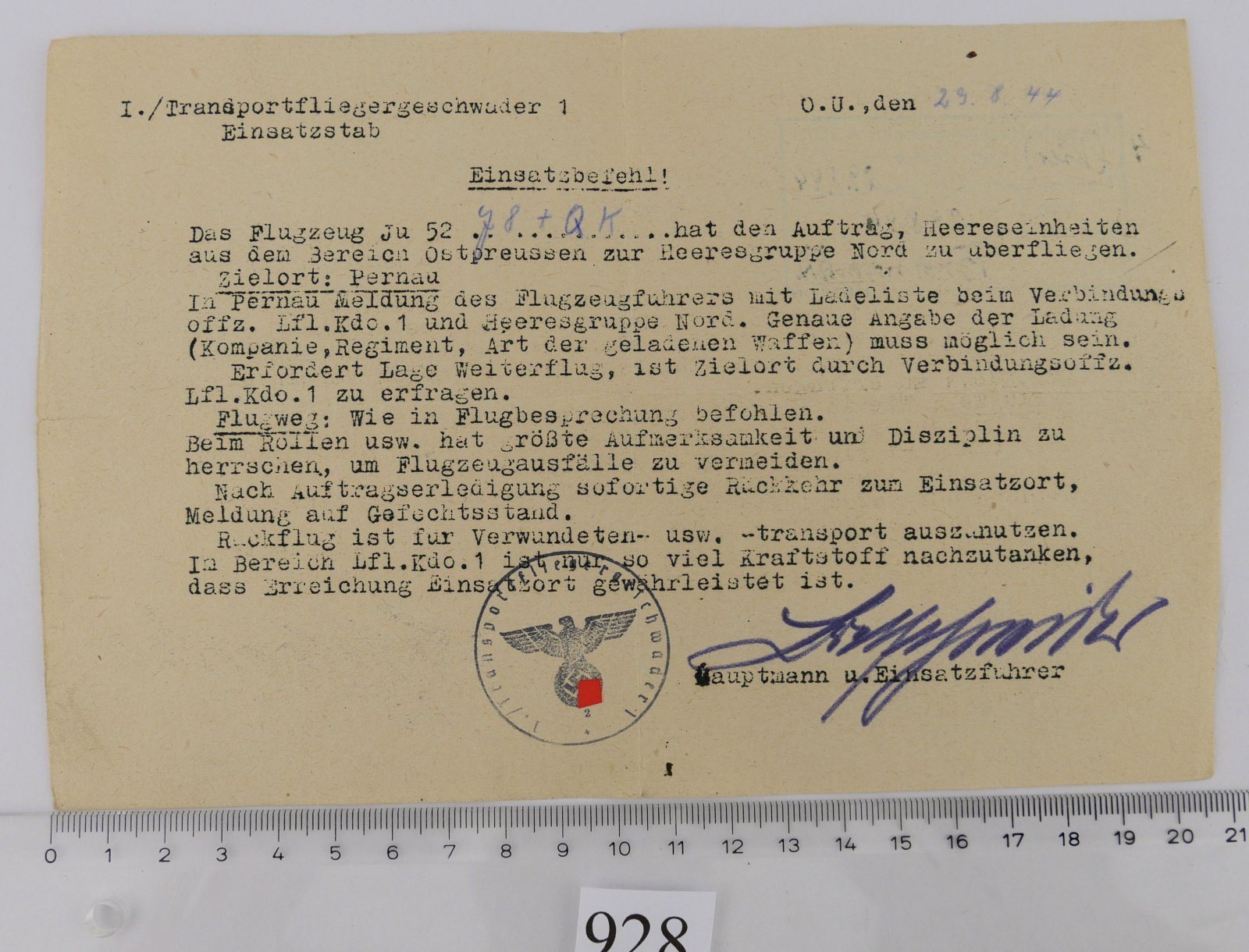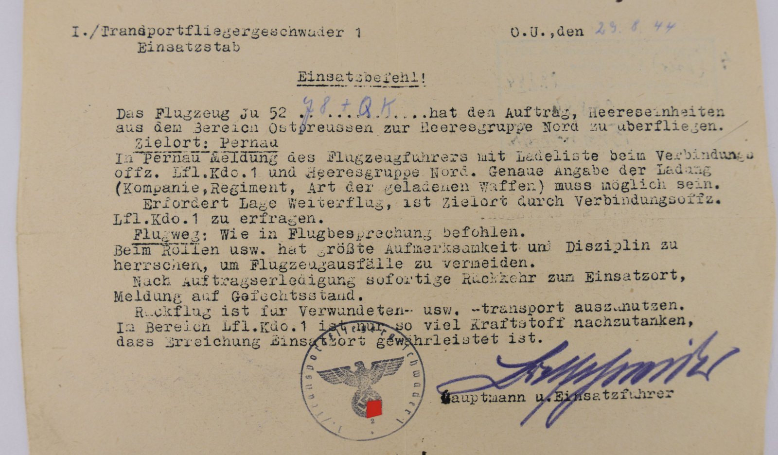 Einsatzbefehl Transportfliegergeschwader 1944 PERNAU