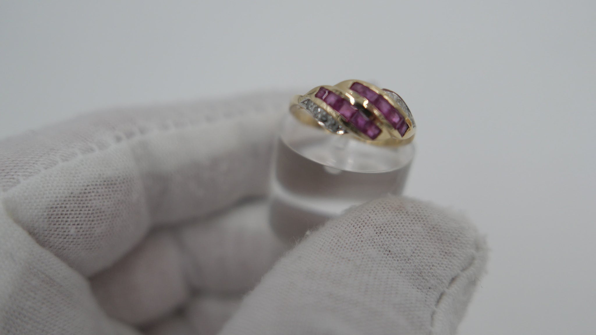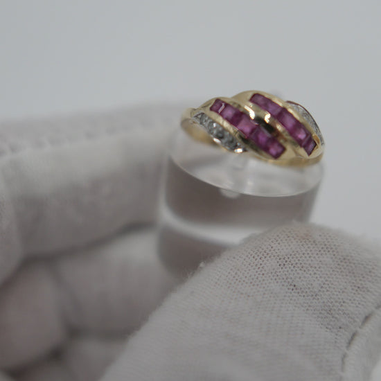 Gelbgold Damenring Rubin & Achtkant Diamanten 585 14K Gr.56
