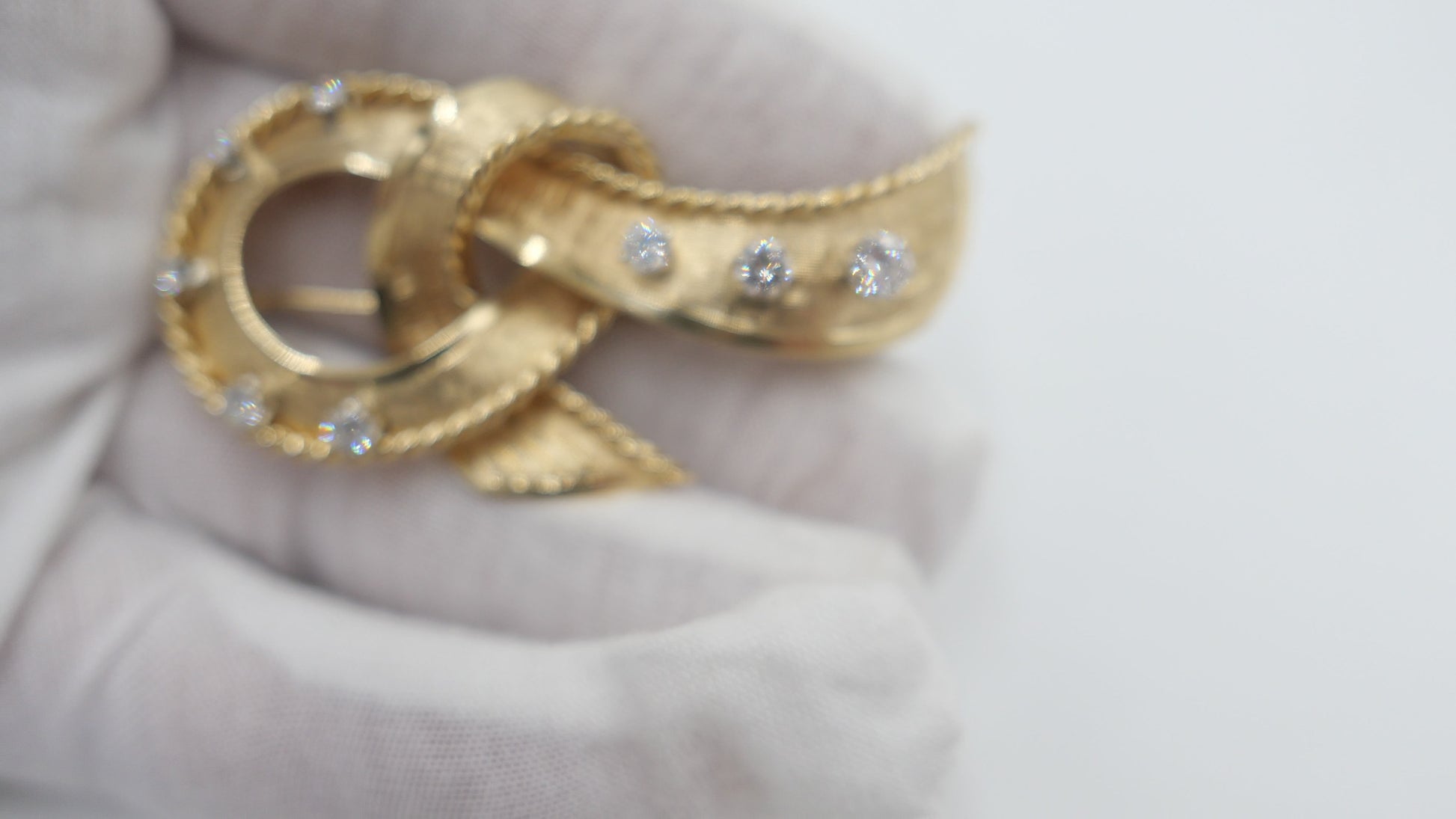 Große alte Schleifen Brosche 750 18K Gelbgold 1,34 Ctw Brillanten 66mm Punze SF
