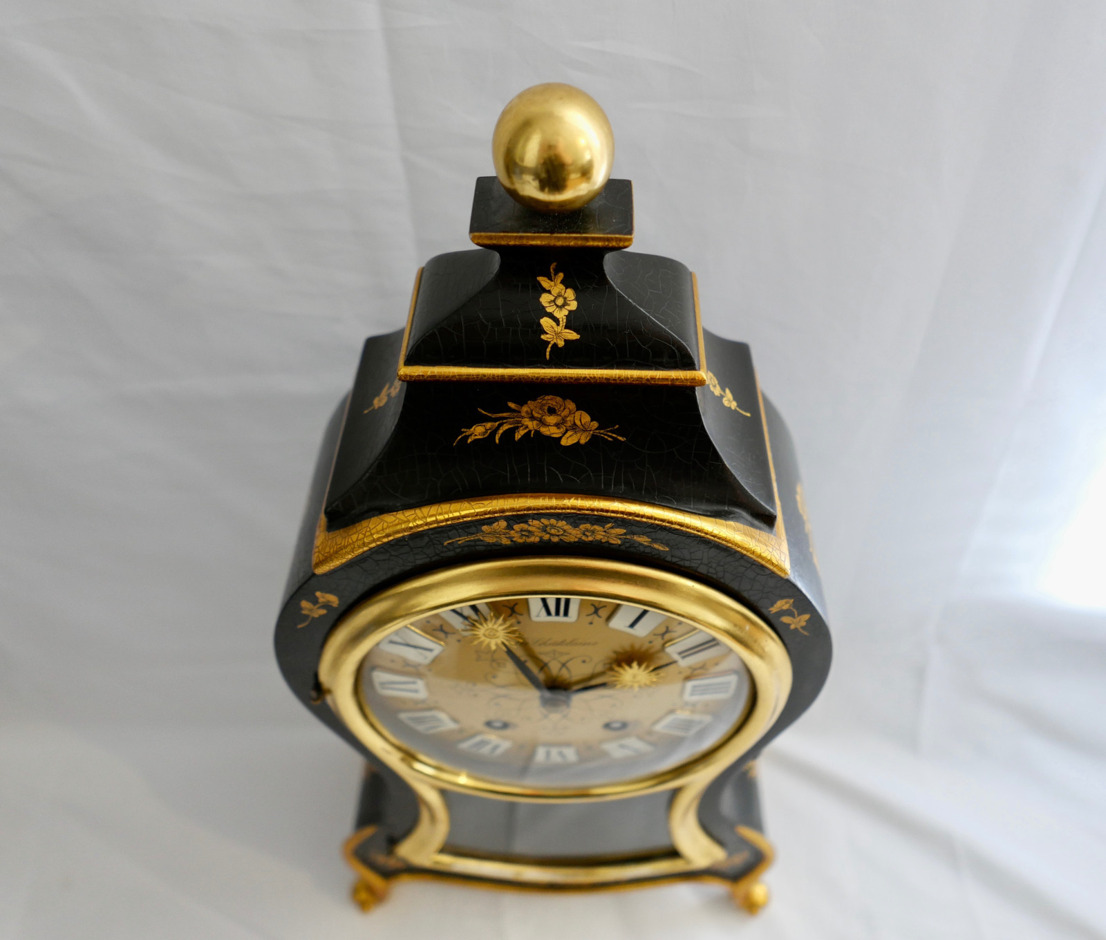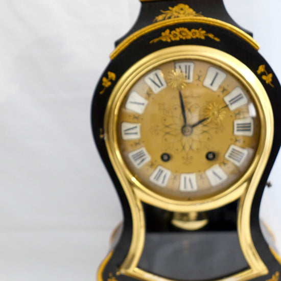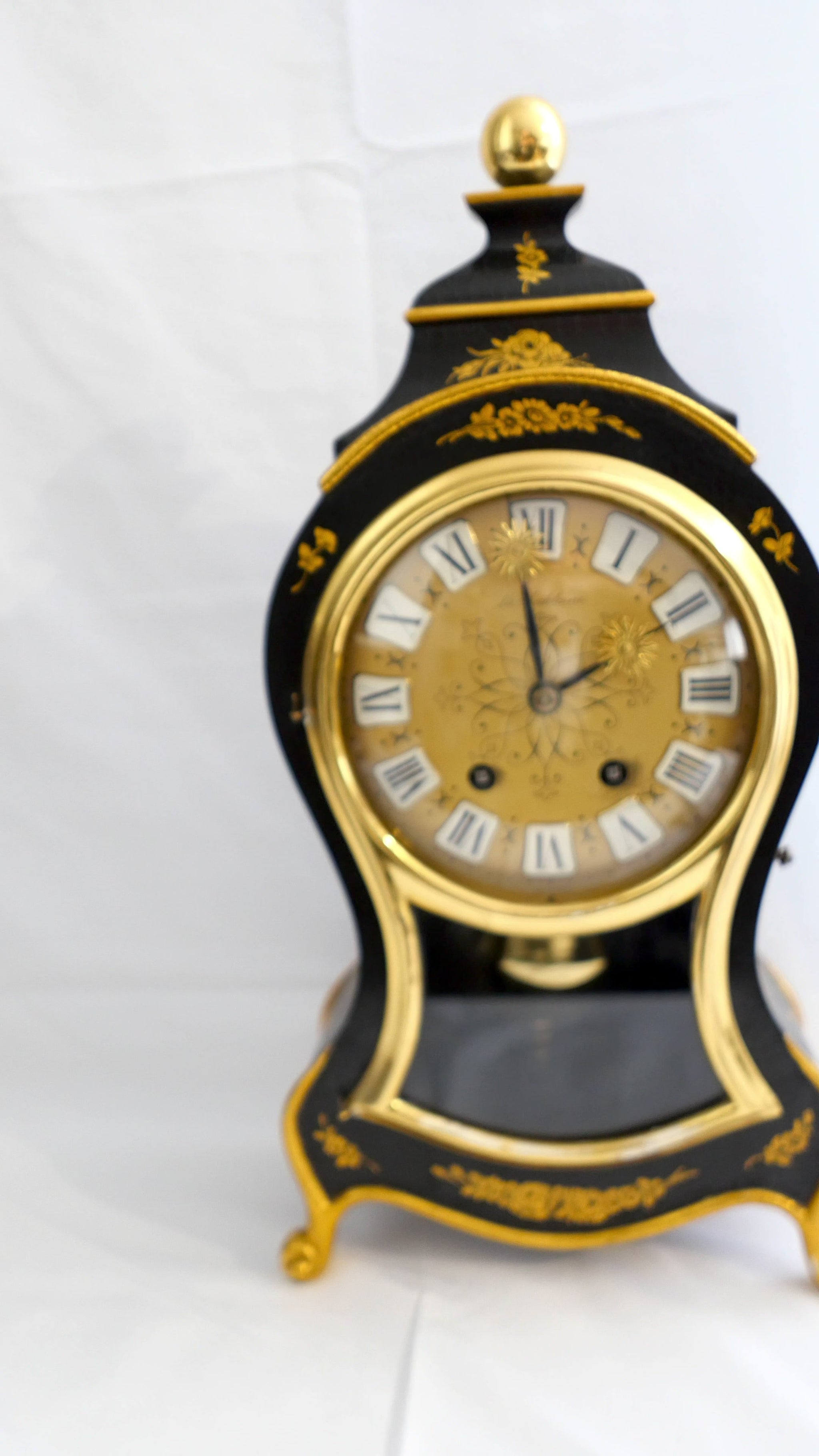 Große Pendule 43cm Tischuhr Kaminuhr La Châtelaine schwarz Gold Stil Louis XVI