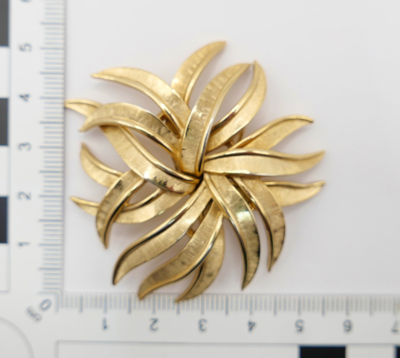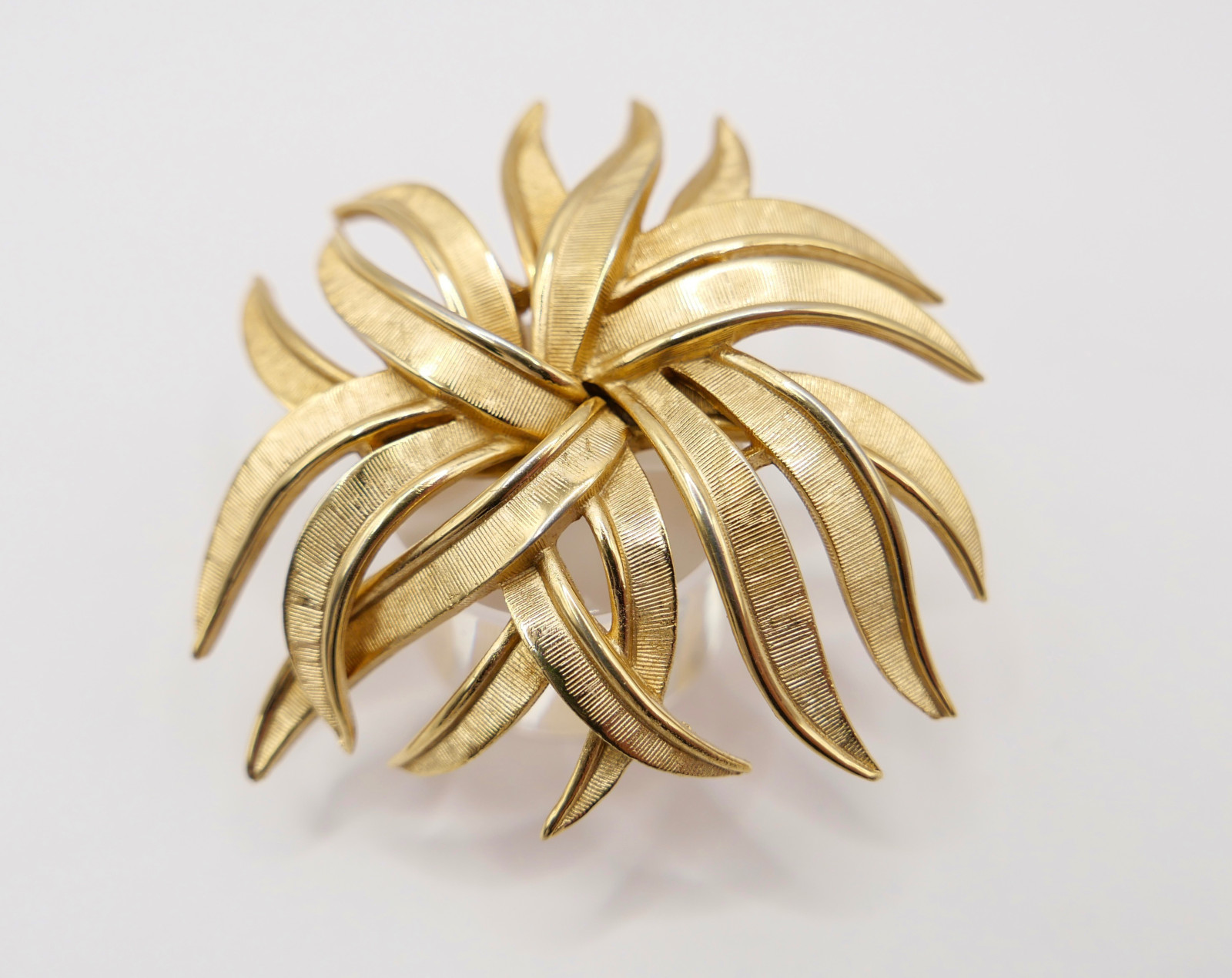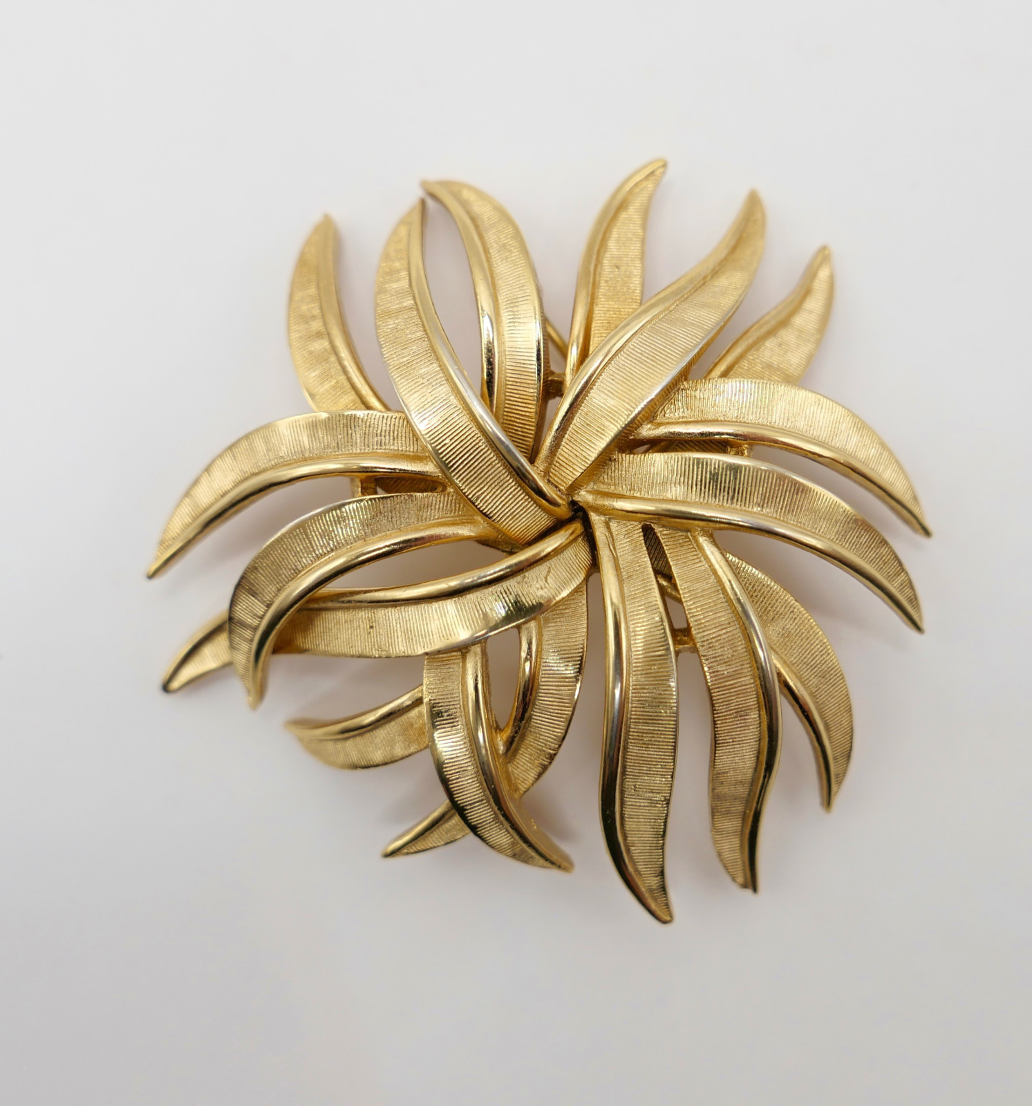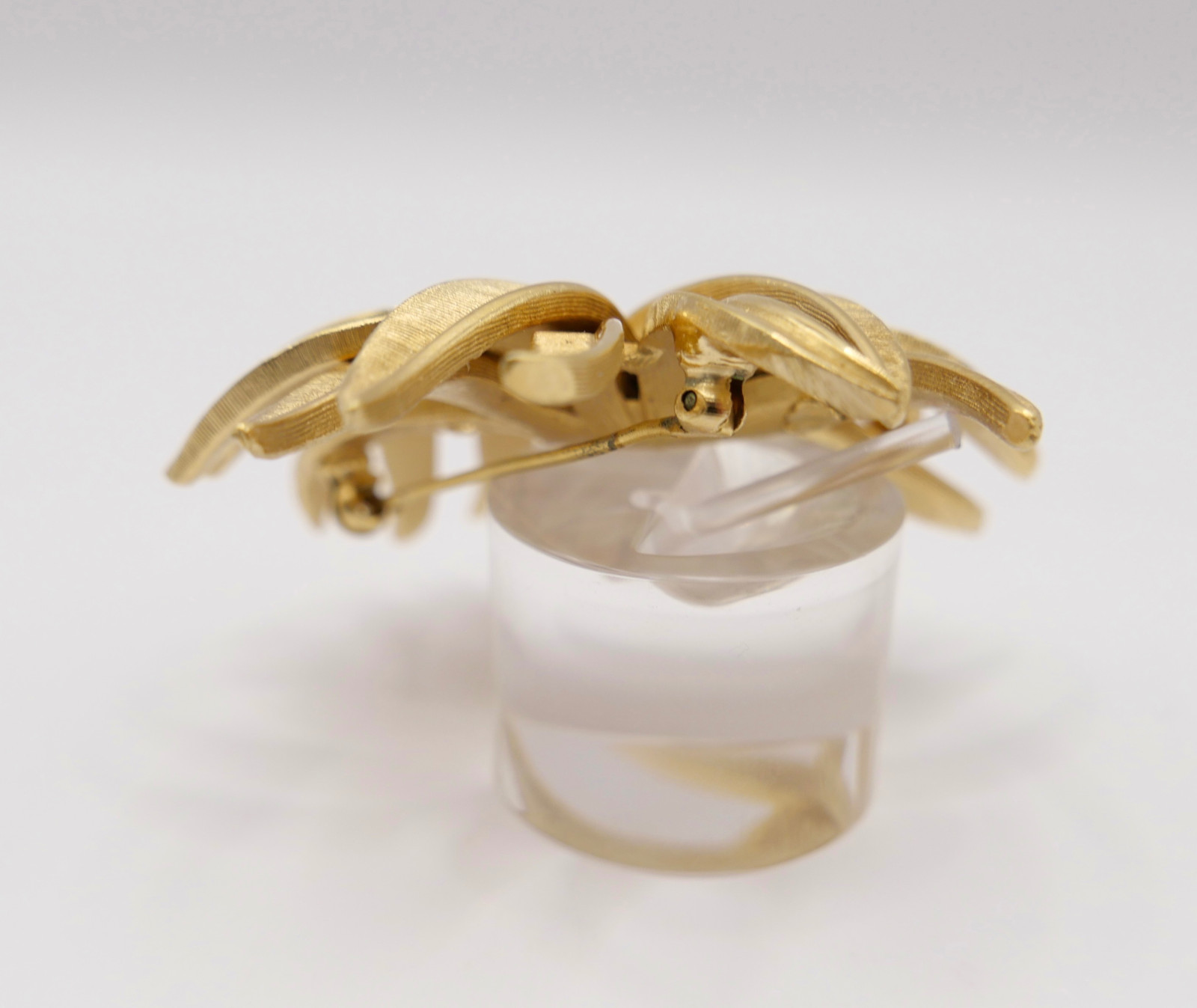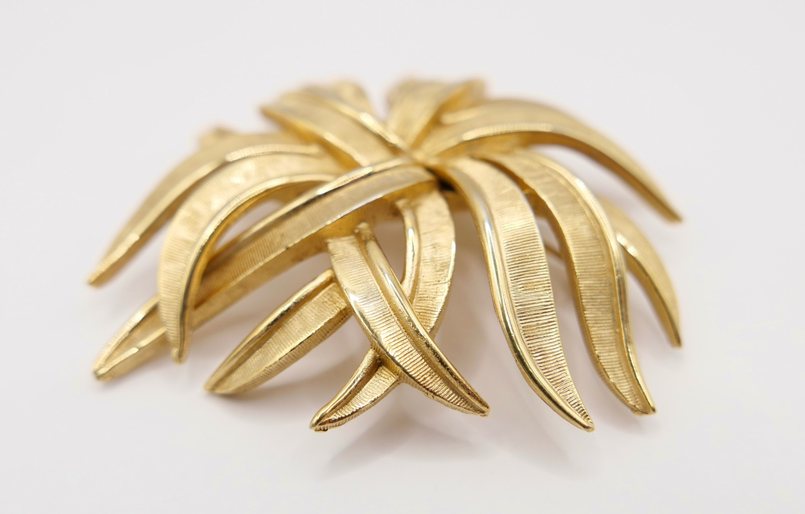 große TRIFARI Designer Blatt Brosche Damen vergoldet Floral 56mm