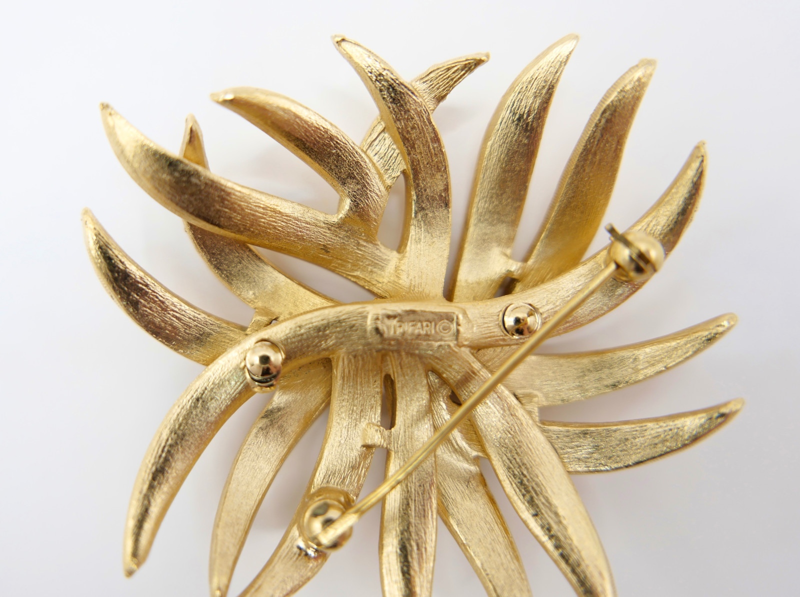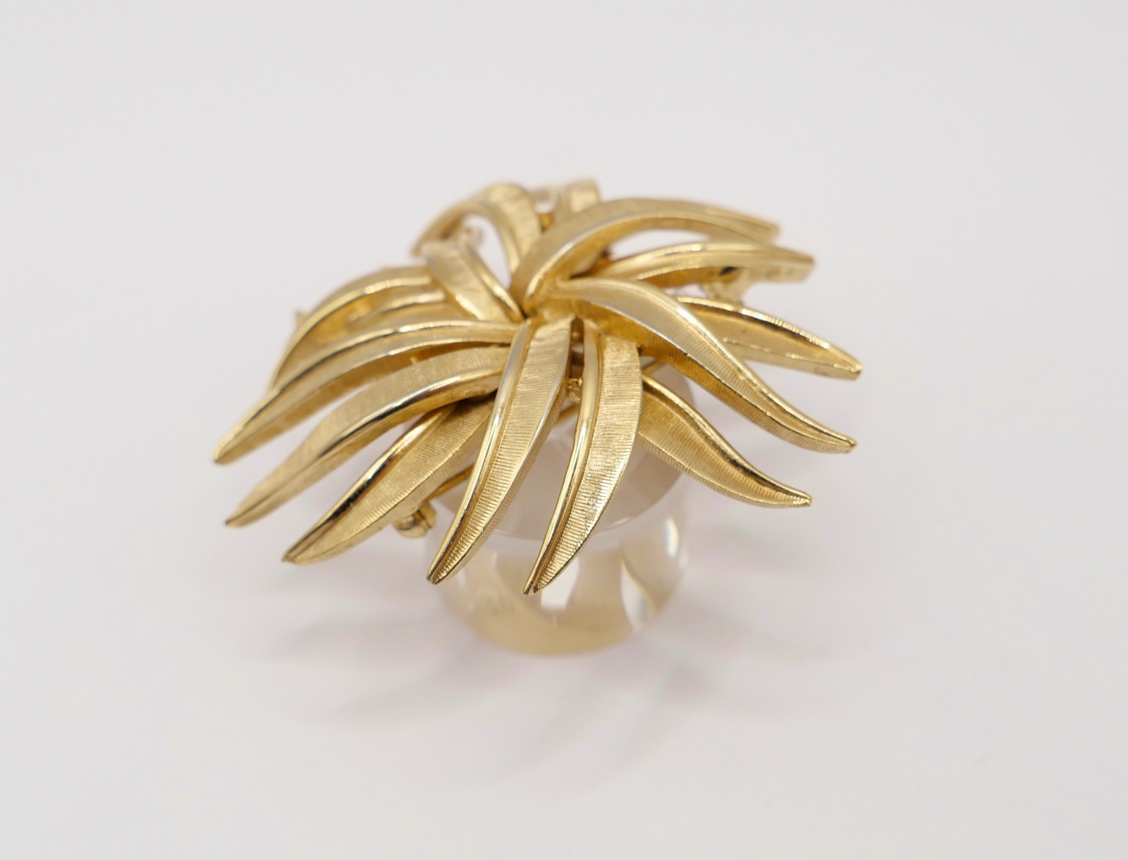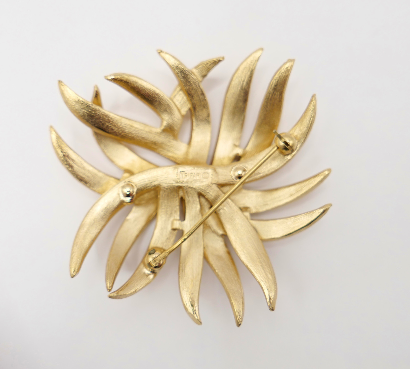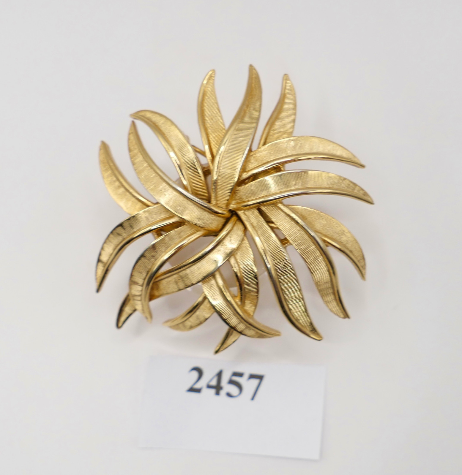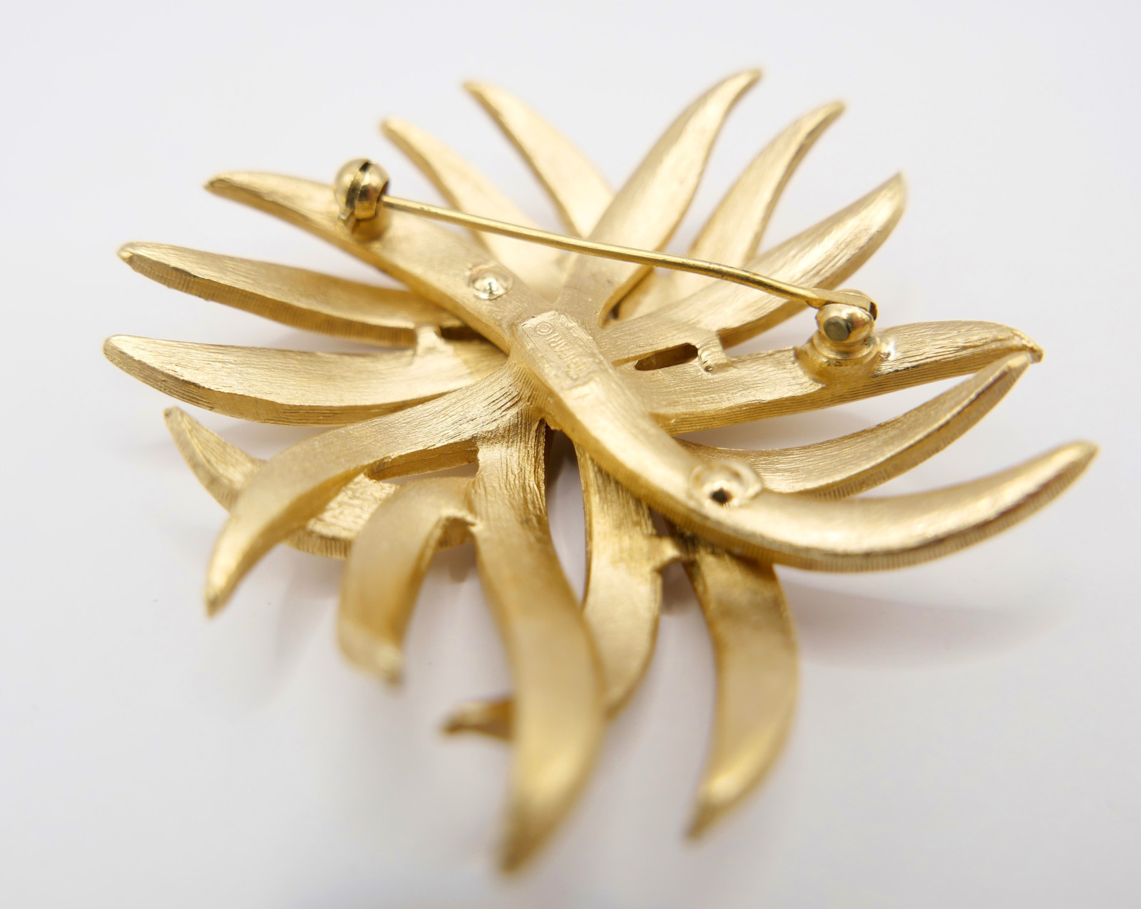 große TRIFARI Designer Blatt Brosche Damen vergoldet Floral 56mm