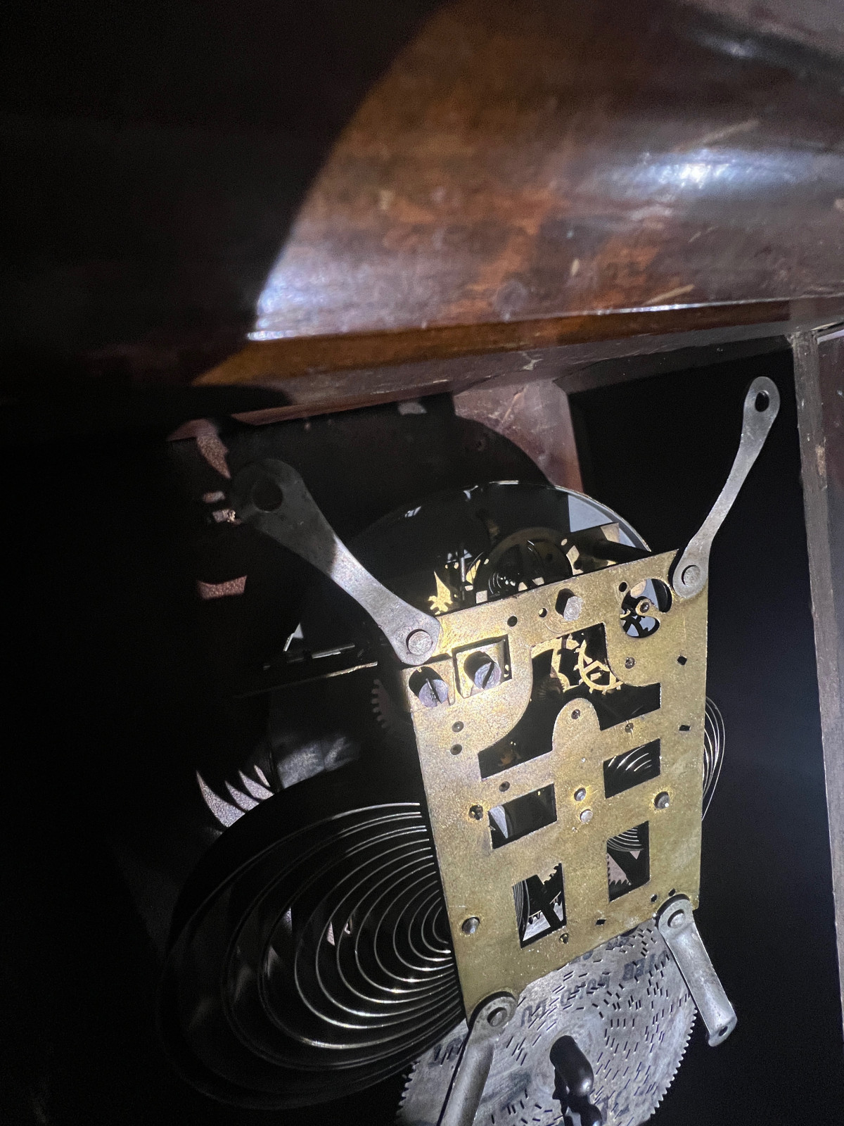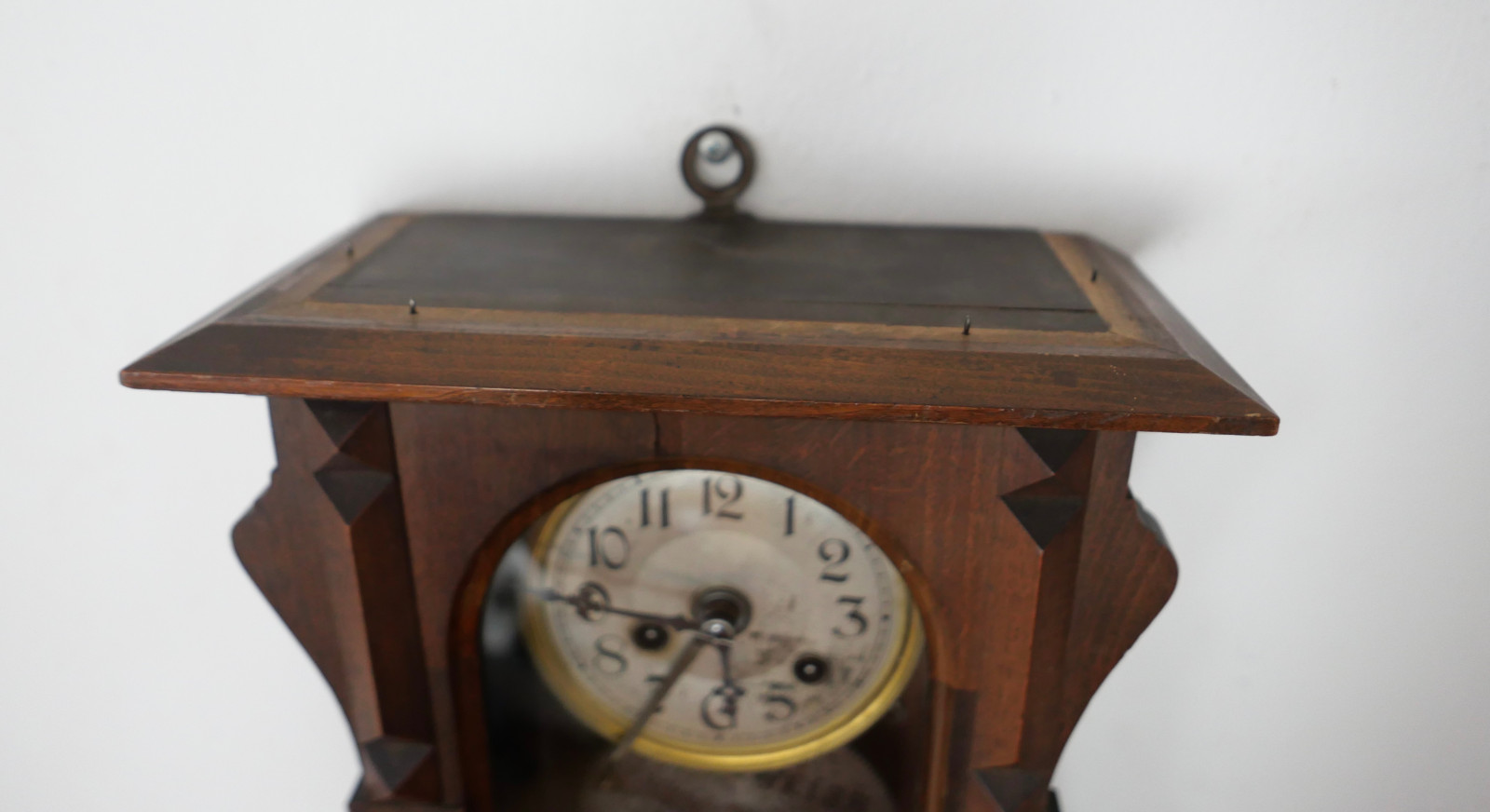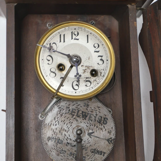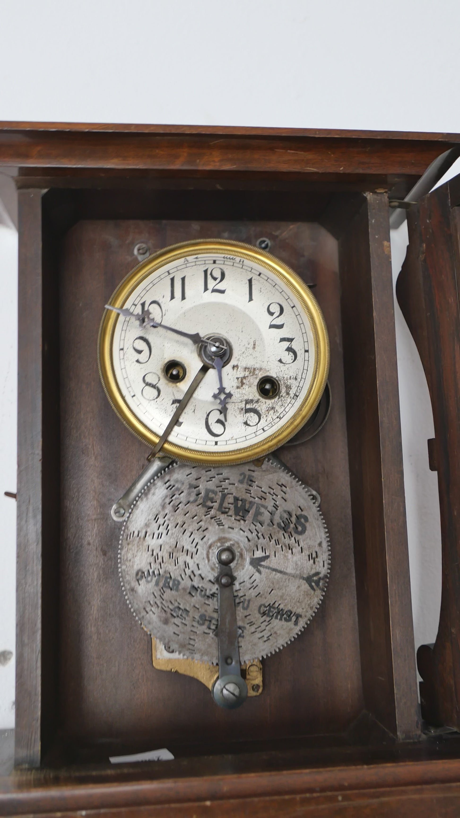 Kleine antike Wanduhr mit Spielwerk für Lochblech Platten um 1900