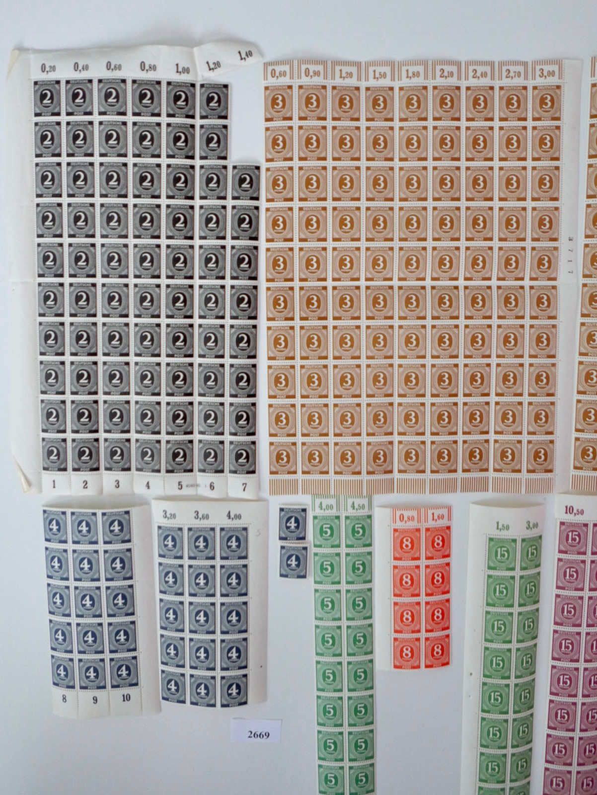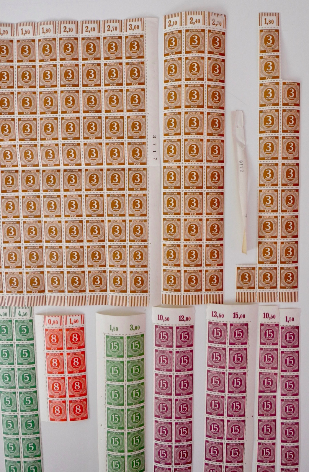 Umfangreiches Konvolut an Briefmarkenbögen und Einheiten der Ziffernserie (Kontrollratsschau),