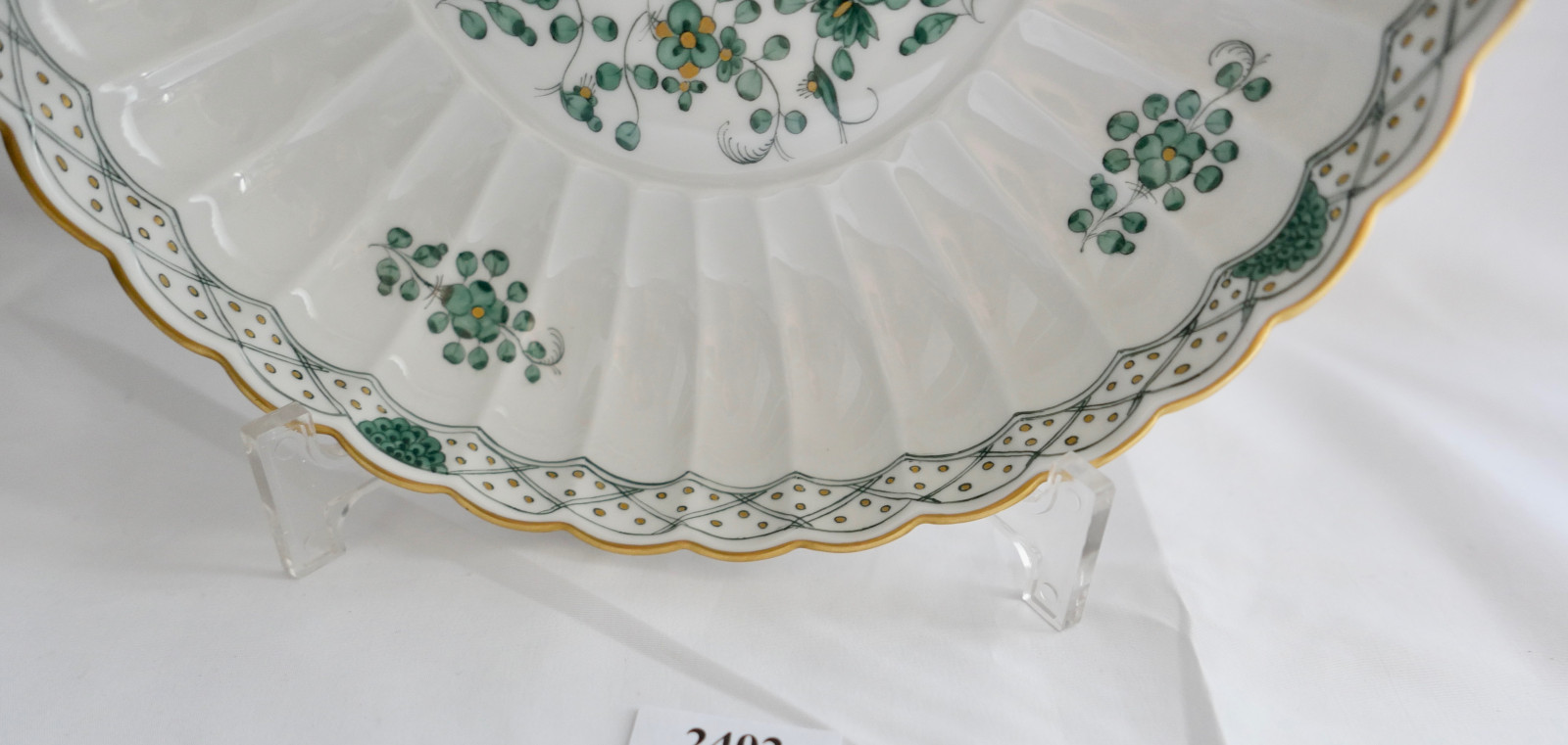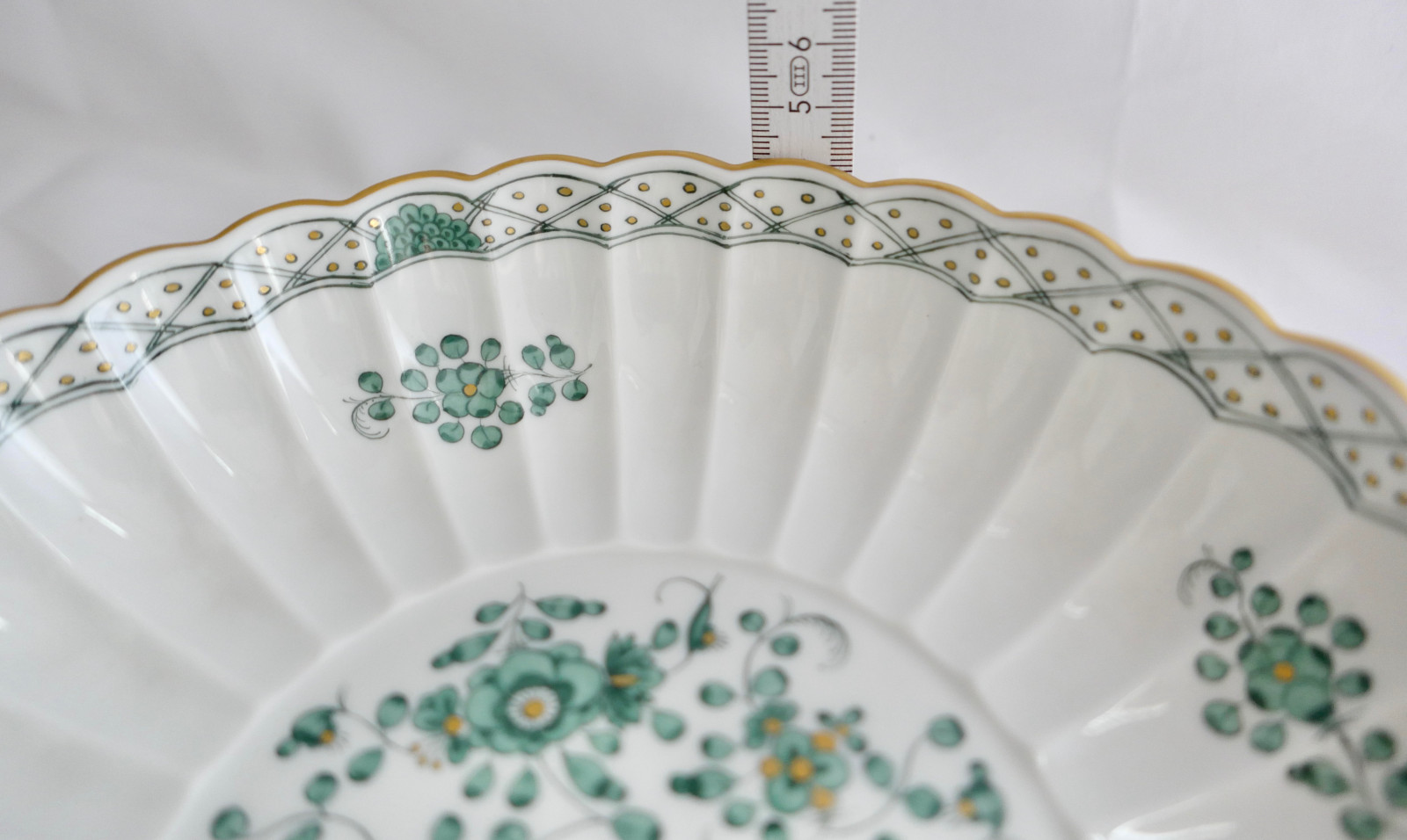 Meissen 1. Wahl Porzellan geriffelte Schale Teller indisch grün reich 21,5 cm