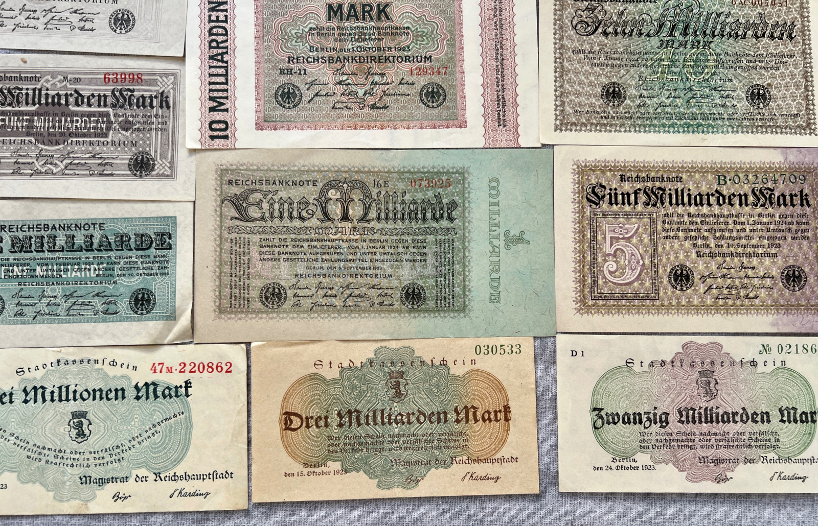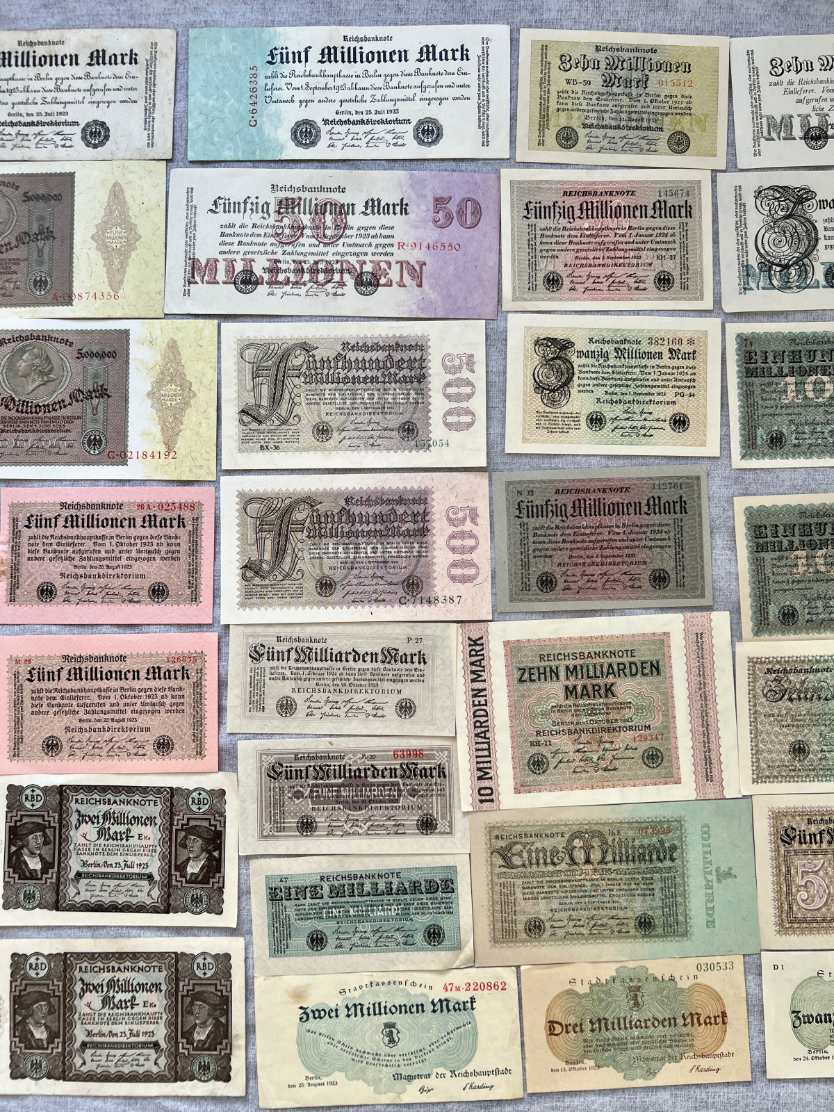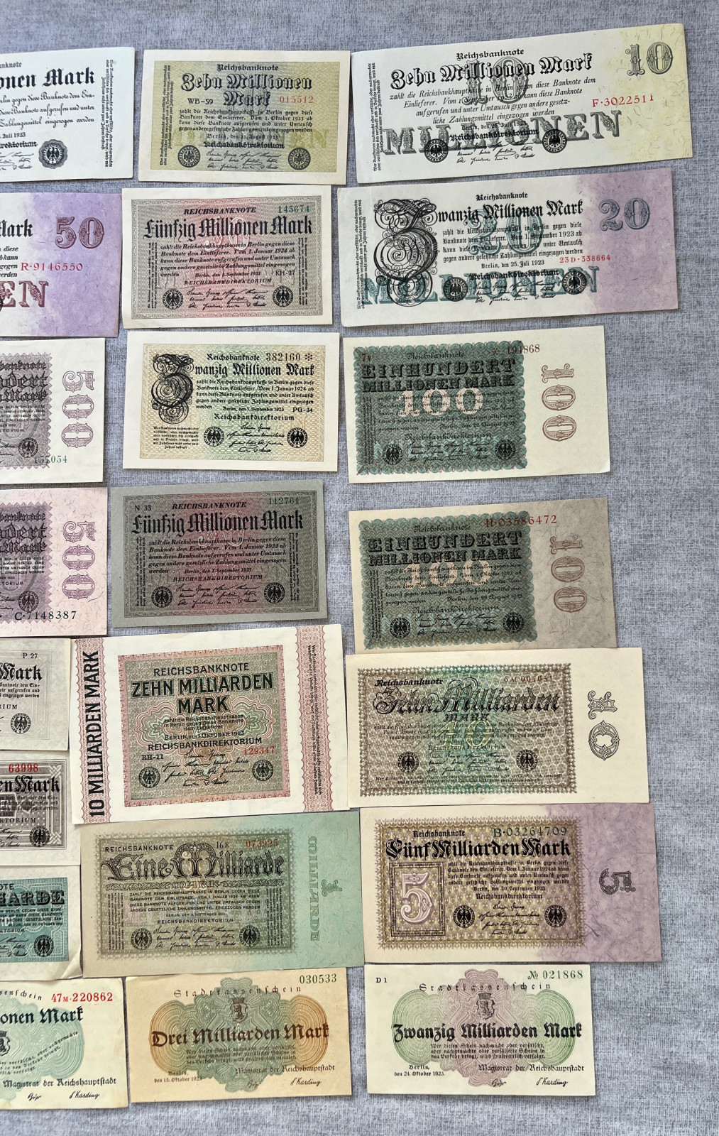 Posten 37x Inflation Geldscheine Banknoten Mio Mrd Mark UNC dt. Reich Ro. 111c