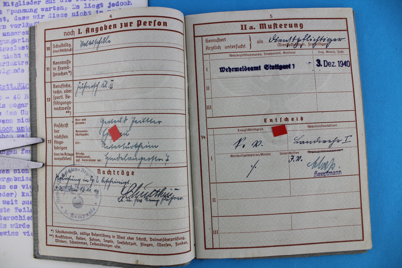 Posten Dokumente Zeugnis Wehrpass eines Soldaten