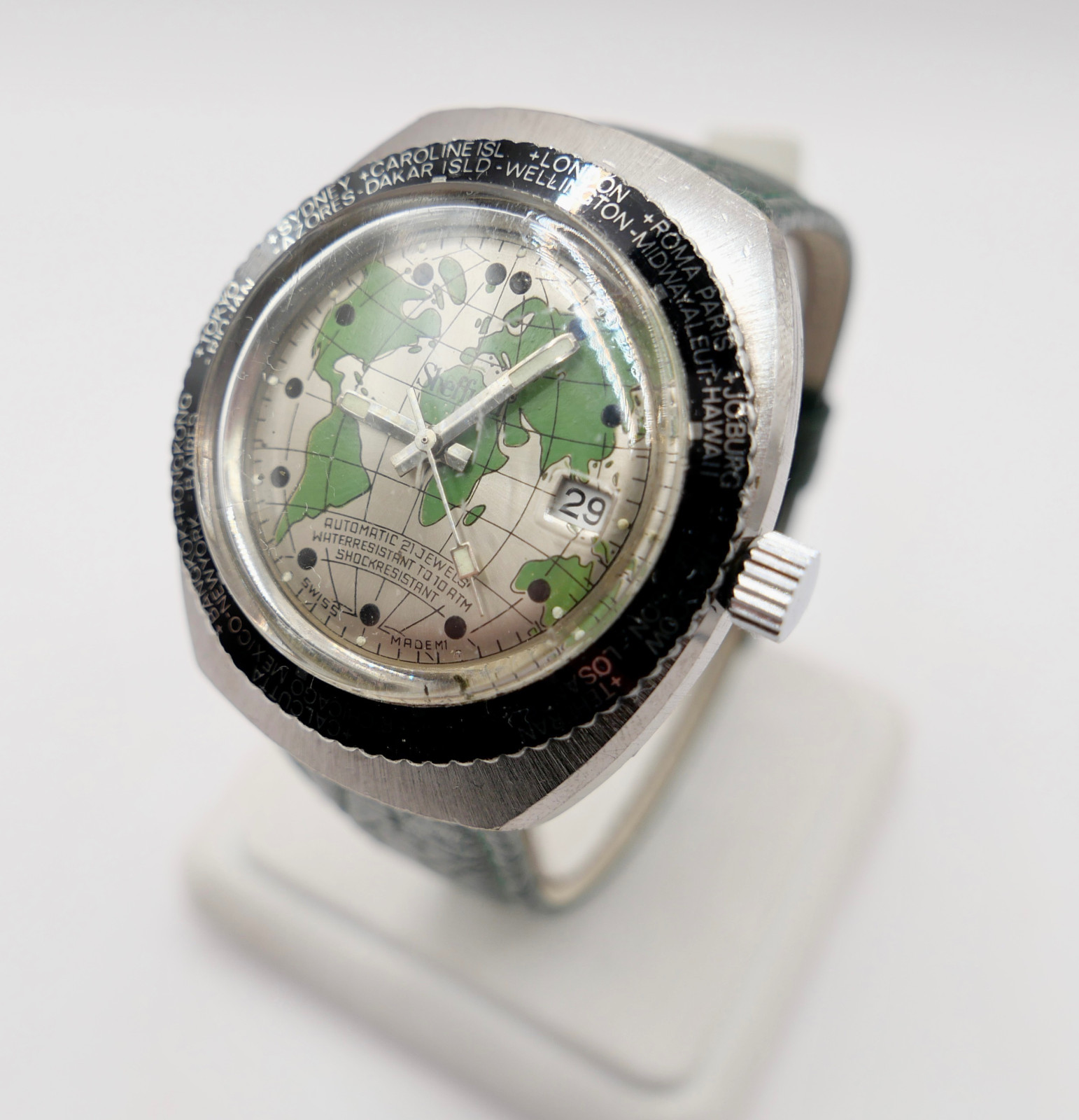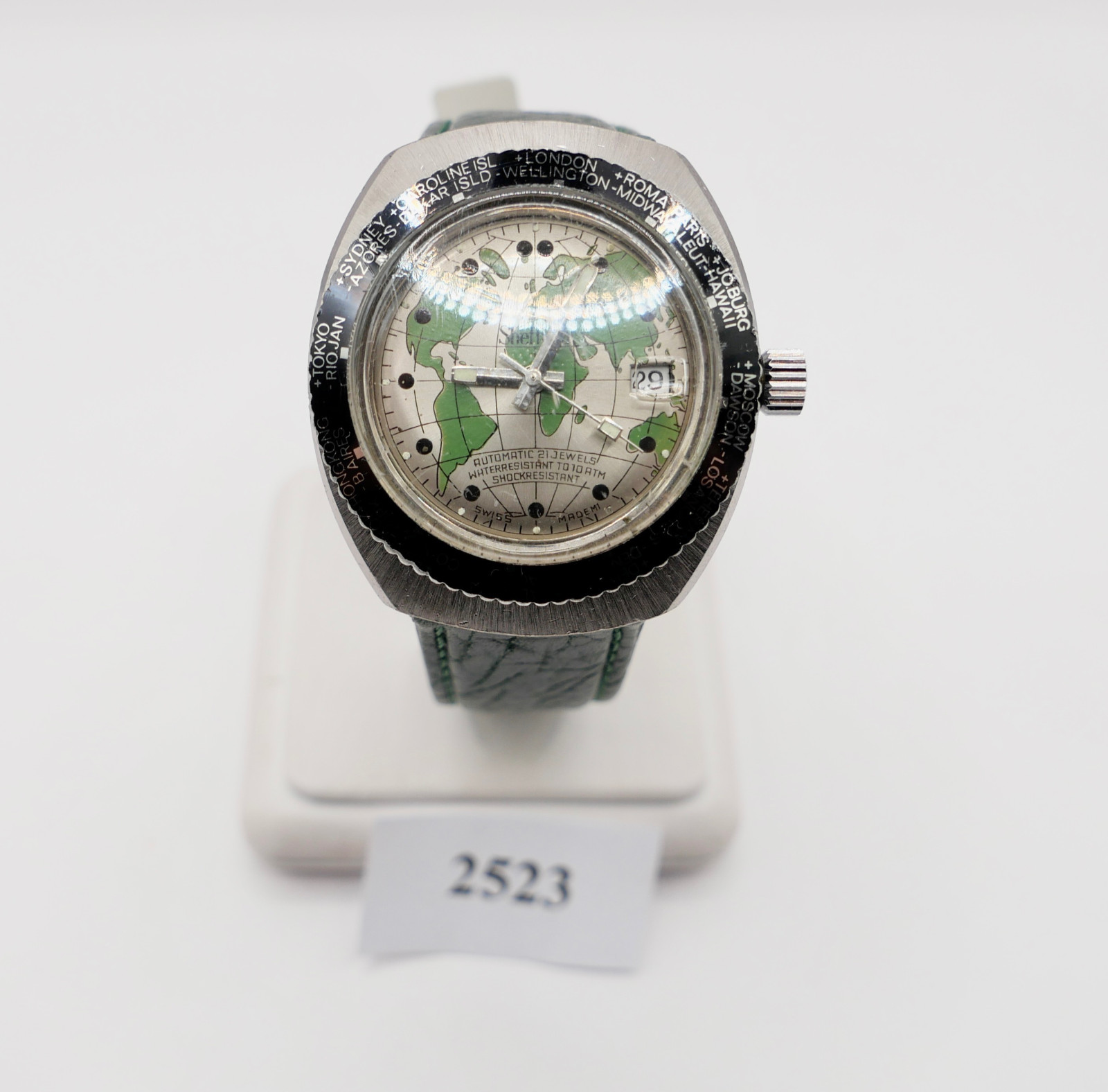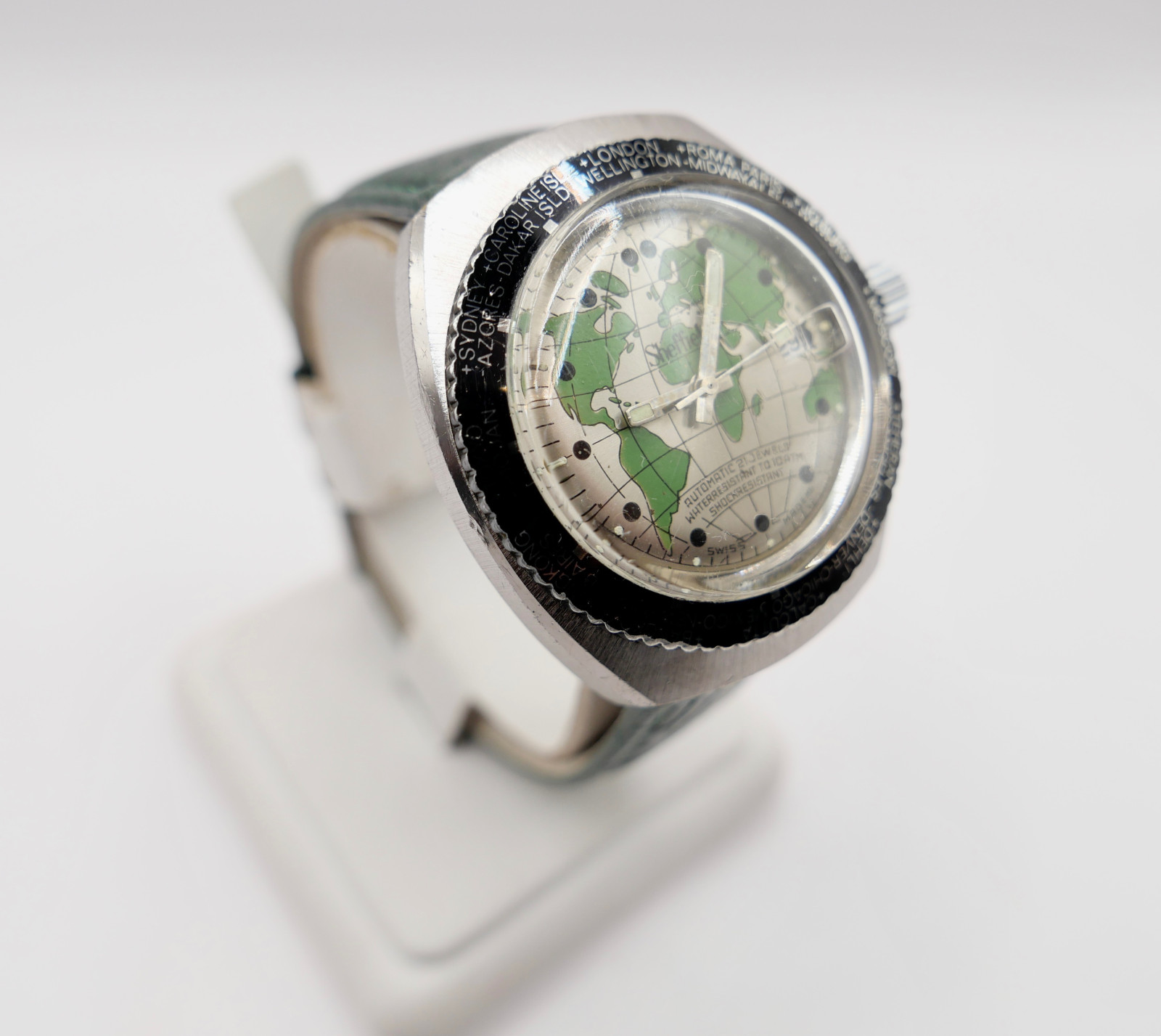 Sheffield Taucheruhr Weltuhr Herren Armbanduhr Automatik mit grünem Zifferblatt